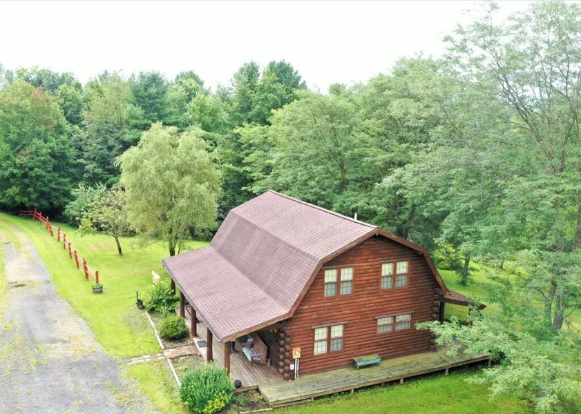 35 acres with Log Home, Hunting Cabin, and Pond in Steuben County.