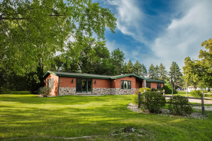 Peaceful living in this rambler style house on 1.6 acres! Almost 2100 square feet on the main level with 3 bedrooms, 2 bathrooms, and main floor laundry. The large primary bedroom has a 3/4 bath with a jetted tub. Huge family room is perfect for entertaining and boasts a beautiful gas fireplace made of stone. Off the family room is a relaxing sunroom that overlooks the private backyard. The basement has the potential to add 1300+ more finished square footage. Half the basement already has new sheetrock and is ready for flooring, also a roughed in bathroom. Property also comes with a large 2 stall garage that is 876 square feet!