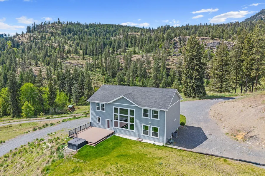 Discover breathtaking views & modern elegance in this stunning 4-bedroom, 3-bath home situated on over 6 acres overlooking the Colville Valley. Sunlight floods through expansive picture windows, highlighting the kitchen w/concrete counters, gas range & walk in pantry, dining area & vaulted living room. The main floor boasts a spacious primary suite w/a luxurious tiled walk-in dual head shower, double sinks & closet w/laundry facilities conveniently located nearby. Upstairs, you'll find three bedrooms, loft area, den/office & full bath. The spacious unfinished basement is insulated & wired w/garage access. There is also a heated saltwater pool w/gas open flame firepit, hot tub, deck & large lawn.