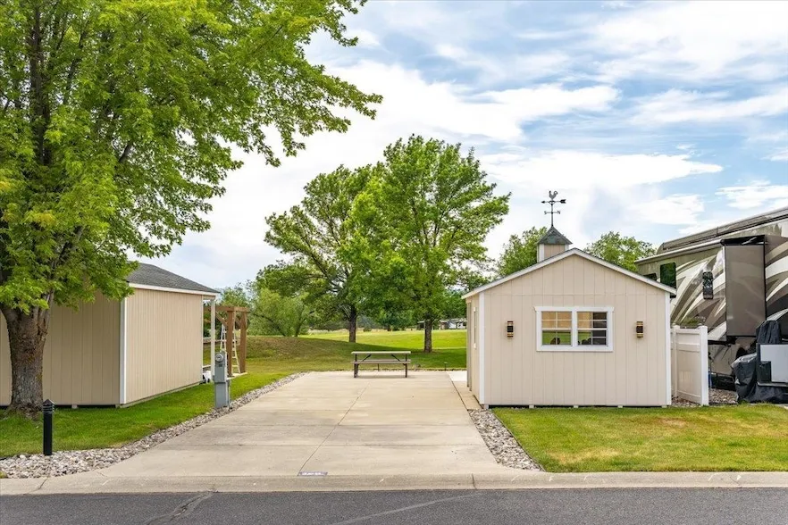 Welcome to 5-Star RV Resort living at its finest! This premium lot sits right next to the 8th hole of the beautifully landscaped Deer Park Golf Course, offering stunning views and a peaceful setting perfect for golf lovers and RV enthusiasts alike. The lot features a new 12' x 24' shed with a cozy porch and 30amp power, plus an extended concrete patio, all professionally installed (2023) and ready for you to customize and make your own. Enjoy the added bonus of an updated privacy fence for your outdoor comfort. This resort community offers top-notch amenities, including a heated pool, hot tub, clubhouse, bathrooms, showers, laundry, dog runs, pickleball court, 9-hole putting green, and a family pavilion for gatherings. Full water, sewer, and 50amp hookups available for a coach RV or park model RV s! Don t miss this opportunity to secure your spot in this incredible resort schedule your tour today!