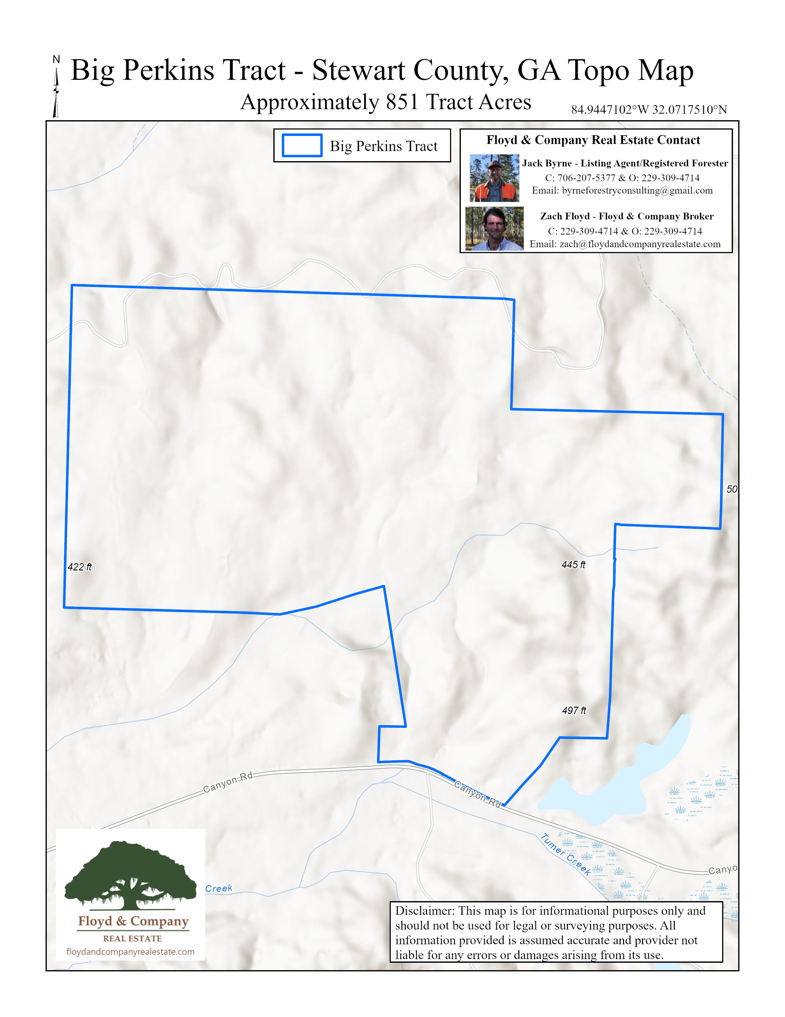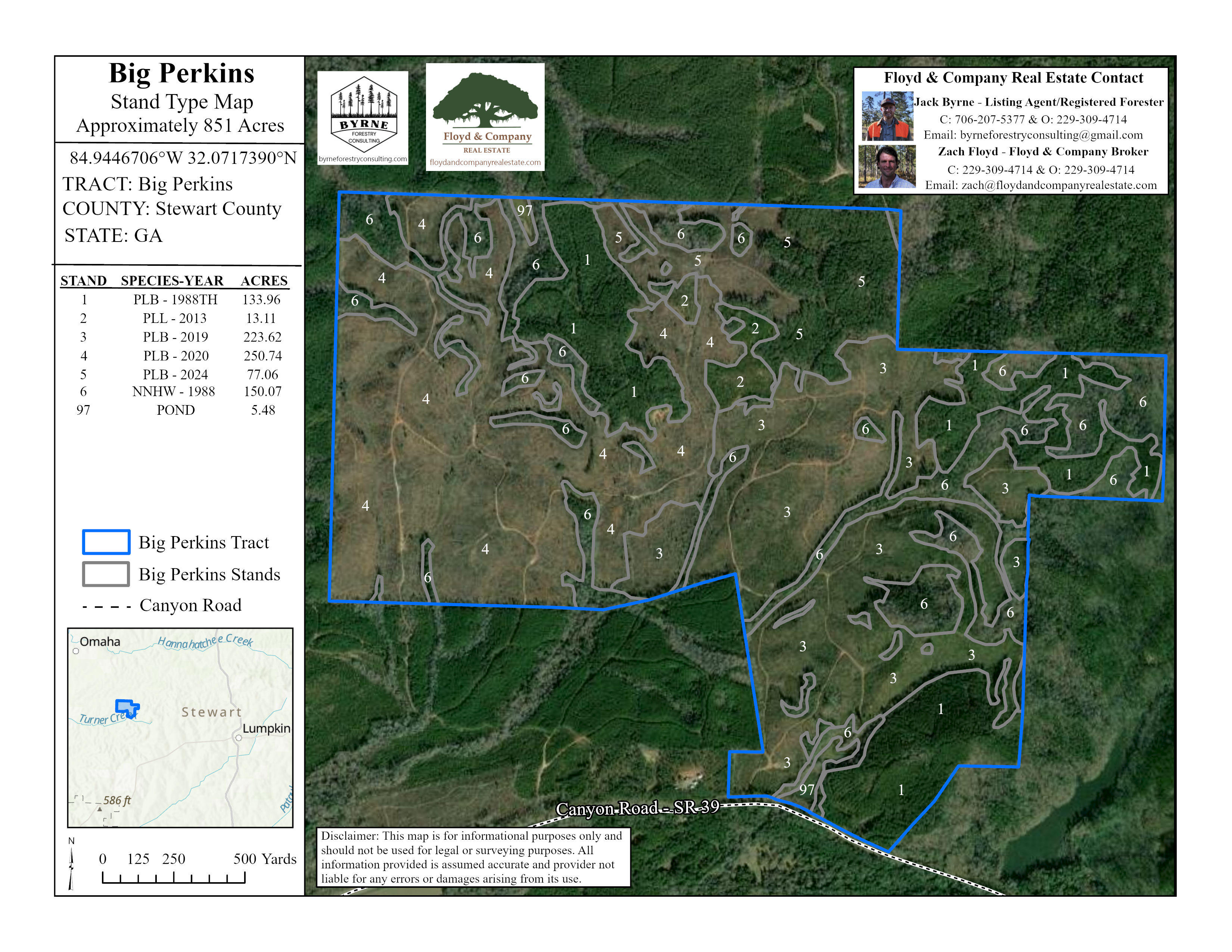 "Big Perkins" Timber and Recreational Tract, located west of Lumpkin, GA in Stewart County, is on the market for the first time in over 80 years. The tract consists of +/-848 acres with approximately 1,500 ft of road frontage on Canyon Road, just 2 miles west of Providence Canyon State Park. This farm checks all of the boxes, from thriving wildlife habitat for the avid outdoorsman to long-term timber investments. Interior roads have been completely regraded for full access throughout the property, and with a new survey plat underway, Big Perkins is positioned as a true turnkey opportunity ready for its next owner. Grow your legacy into Stewart County GA today!