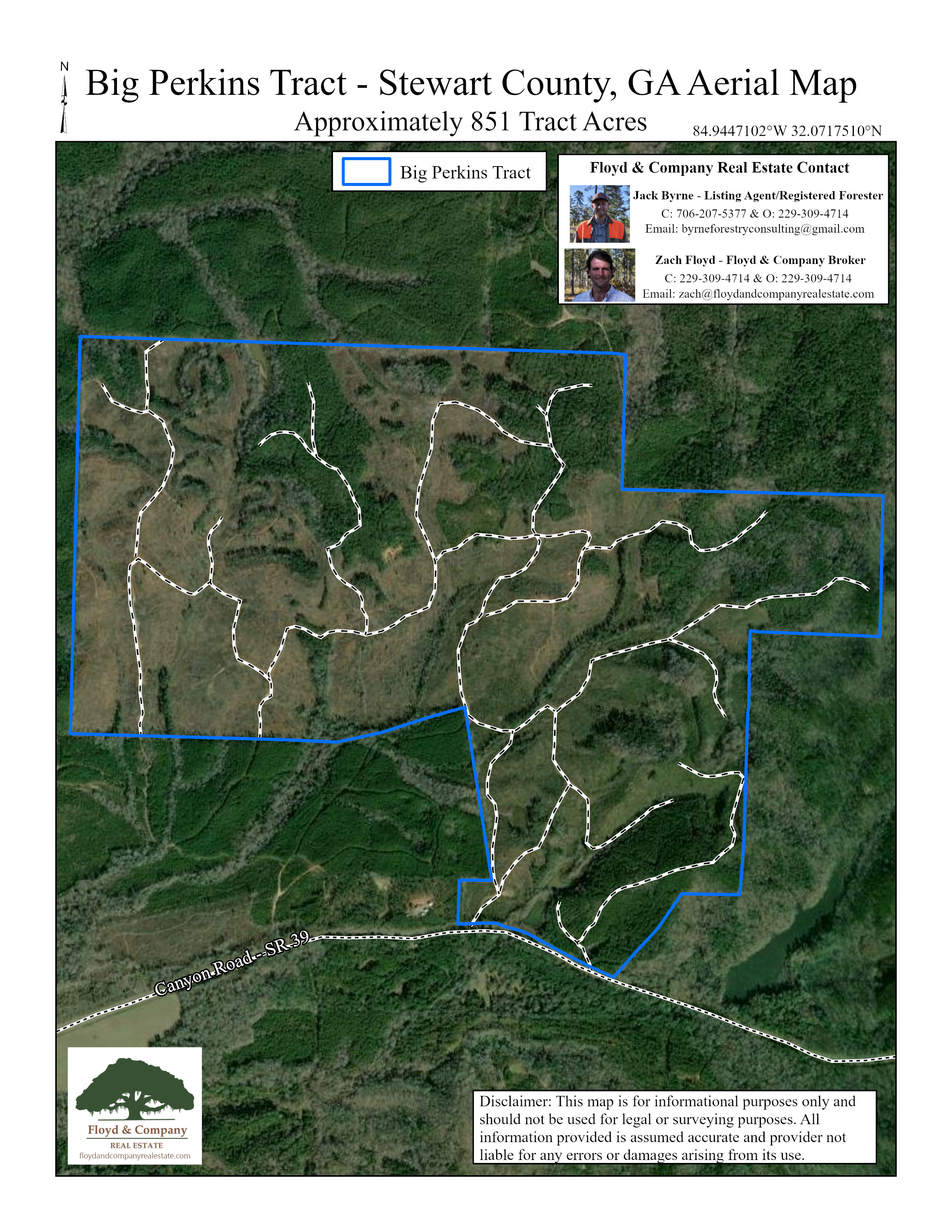 Research Parcel InformationHead west on GA-39C W (Canyon Road) from Lumpkin GA for 9.4 miles to signed entrance on north side of road. Tract coordinates:32.072139, -84.944472.