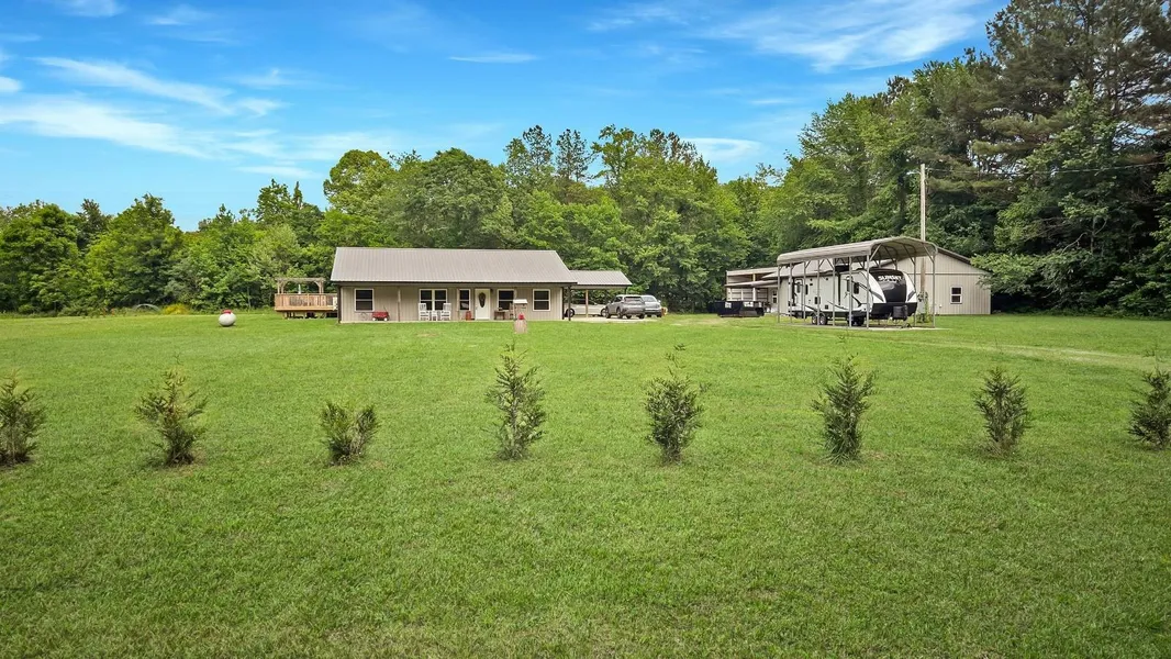 Dover, TN Mini-Homestead on 5.2 Acres - Main Home + Guesthouse + Serious Workshop Space Welcome to your private retreat in the heart of Dover! Built in 2018, this 3 bed, 2.5 bath home offers 1,600 sq ft of charm and versatility, plus a fully equipped 594 sq ft guesthouse and garage setup-all nestled on 5.2 beautifully maintained acres. The main home features hardwood flooring, oak trim, textured ceilings, and an open-concept living space anchored by a cozy gas fireplace. The kitchen includes a single bowl farmhouse sink, lazy Susan cabinets, dishwasher, refrigerator, and an electric stove with gas hookup available. The 19x9 laundry room doubles as a utility space with built-in shelving and a half bath. The primary suite includes a sliding door to the patio, walk-in closet, and a farmhouse-style door to a full bath with tub/shower combo and single vanity. Bedroom three has its own private bath featuring a walk-in tiled shower with rain head, walk-in closet, and single vanity-perfect for guests or a private suite. Enjoy outdoor living with an 8x48 covered front porch, 69x16 backyard patio, 24x30 pool deck surrounding a 27' round above-ground pool, 36x14 concrete RV carport, 20x18 metal carport, 28x48 lean-to, and a 10x20 she shed. The guesthouse is a gem on its own with a gas stove, refrigerator, built-in cabinets (some on wheels), a tub/shower combo bath, split HVAC, and its own septic tank. TVs in the guesthouse convey. The 33x29 garage is attached to the guesthouse and features built-in storage, a working generator, split HVAC, washer/dryer hookups, and a freezer that can stay. Additional perks include privacy trees, a well with filtration system, propane tank, apple and pear trees, and even a Cub Cadet 50" mower and tractor that can convey. This one checks every box for comfort, flexibility, and full-on country living. Don't miss it!