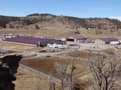 This state of the art horse facility is located 2 miles north of Columbus, Montana on a paved road and 45 miles west of Billings, Montana. Set in a valley surrounded by pine covered hills and picturesque rock cliffs. Improvements include, 2,550 sq. ft., 3 bedroom, 2 ½ bath home built in 2003, an 32,400+/- sq. ft. heated arena with 56 horse stalls, a 58 stall pole barn, 60 x 100 ft. pole barn, shop and hay storage. Also included is an additional 100 foot round pen and 90 x 110 ft. show pen. A must see to appreciate, priced below replacement cost.