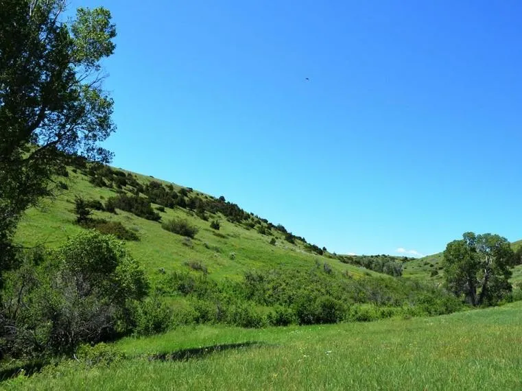 The variation in terrain on Holden Ranch is simply amazing. As you leave the headquarters and drive through near by hay fields, you have no idea of the beauty that is soon to open up before your eyes. The main drainage through the Ranch is Section House Creek which is a long deep canyon, with several developed springs for stock and wildlife water. Several other canyons and coulees feed into it, most of which contain developed springs with tanks. There are beautiful stands of pine trees, western cedar, cottonwoods, chokecherries and other shrubs along with wild flowers and strong stands of grass. As you get to the upper reaches of the ranch there are several large open benches with spectacular views of the Yellowstone Valley, the Crazy Mountains and Beartooth Mountains . Glacier Peak, the highest point in Montana is at an elevation of 12,807 feet, with 25 peaks in the Beartooths reaching over 12,000 feet. These mountain ranges include 300 pristine lakes, several permanent snow fields and glaciers.
