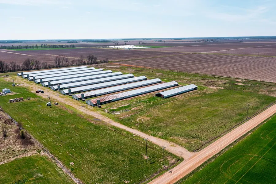 40 acres with 9 - 40X450 ft barns for sale!! Formerly a commercial poultry production facility with 162,000 square feet under roof. Each barn is climate controlled with rotem control system, has lights, water, feed bins, and feed lines. There is a 12,000-gallon propane tank that services the heaters in each house and there are also three 55KW generators to supply power to barns if necessary. Property has two six-inch wells with submersible pumps and bladder tanks to supply barns with water. This is a turnkey poultry production facility ready for a new owner!