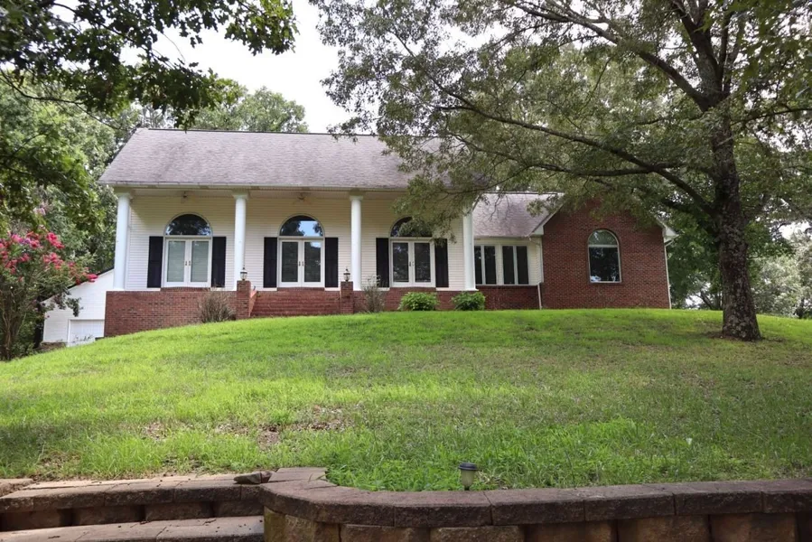 This stunning home sits on nearly an acre surrounded by trees for natural privacy! The inviting front porch has 2 entrances and columns demonstrating the massive ceiling height inside. Split-floor plan has 2-bedrooms & 1-bathroom on one side of the home and the primary ensuite on the other with a large walk-in closet. Relax in the living room, by a fire, while enjoying the spectacular view of your front yard or in 28 x 24 family room, with another fireplace, while overlooking your backyard. The kitchen includes new appliances, a new backsplash, and Corian countertops & high bar for additional seating, between the breakfast area and the dining room. A large laundry room is by the rear entry with extra storage. Full basement, with a 1 bedroom, (potential for 2), large office, another family room, large laundry room, a kitchenette/dining, full bath, and storage room. Enjoy the outdoors with...