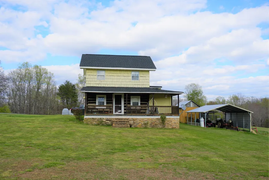 Farmhouse nestled on 2+ acres in country setting features 2 covered porches, front and back, a farmhouse style kitchen with built-in corner shelves, and main level office and laundry. Nice storage building and dog run. Bask in the peace and quiet of this rural setting!