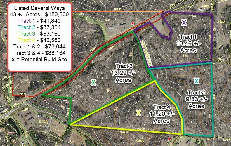 43 +/- Acre, Wooded Lot with endless potential. Great recreational tract or private residence. Private road runs through land. Seller is willing to divide. Buyer pays for survey. Small stream runs through part of the property. 45 minutes from Winston Salem, 1 hour from Greensboro.