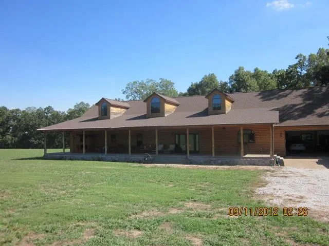 Relax and watch the world go round from the long decks on this log sided home! There is so much room, both inside and out, for you, your family and your 4 legged companions! If you crave privacy, you will find it here, with the home set almost in the middle of 40 acres! The warm, wood floors and accent ceilings in the great room add to the warmth and character. The kitchen is a cooks delight and the 3 bedrooms are large and roomy. There is a pond for animals, pasture for grazing and the home is open and welcoming! This property is located near Blanchard Springs Caverns and is set deep in the heart of the Ozarks! Here, you will not be bothered by the world!