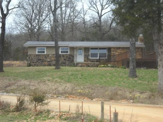 No. 01438 COUNTRY HOME FOR SALE ON 2.13 ACRES NEAR MOUNTAIN VIEW, ARKANSAS. This newly remodeled 4 bedroom 2 bath home has approximately 1721 sq. ft. of heated area. The living dining area features a large front window and a beautiful leaded glass front door. A secondary space for entertaining has a stone fireplace with a new gas log insert perfect for relaxing on a chilly night. New stainless steel appliances compliment the new kitchen cabinets and dark formica counter tops. The master bedroom and bath with large closet is on one end of the house and three bedrooms and a bath are on the opposite end of the house. The kitchen, bathrooms, and laundry room have new ceramic tile floors, all other rooms have new laminate floors and ceiling fans. Park your car in the double carport and enter your home through pretty double French Doors. Relax on the big front deck and enjoy the mountain scenery or watch the turkey and deer crossing the fields. Only a 10 minute drive into Mountain View where you can shop, listen to the folk music on the square, visit the Ozark Folk Center or take in a local variety show. $114,000.