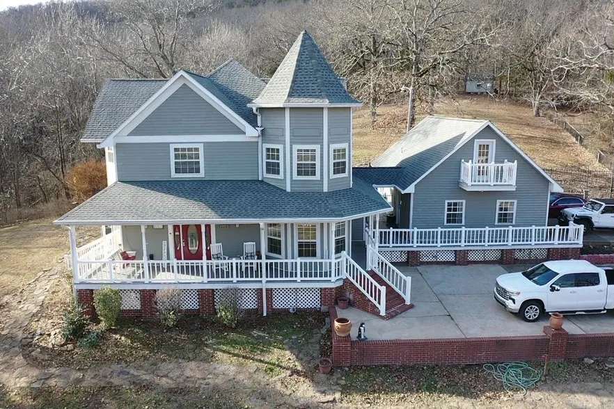 Welcome to this stunning Victorian home nestled on 4.95 M/L meticulously maintained acres with breathtaking mountain views. Boasting a spacious 2844 sq ft main house with 3 bedrooms, 2.5 baths, and a 1444 sq ft mother-in-law apartment with 1 bedroom and 1 bath, this property offers the perfect blend of comfort and versatility. The main house features a recently updated kitchen with new cabinets, undercabinet lighting, granite countertops, a porcelain farm sink, and luxury vinyl flooring. Relax in the large living room with a gas log fireplace or unwind in the sunroom with your morning coffee. The covered back patio and front porch swing offer ideal spots for outdoor entertaining and relaxation. Retreat to the generous primary suite with a sitting room, full bath, and walk-in closet for ultimate comfort. The covered breezeway connects the main house to the mother-in-law quarters, complete with a full kitchen, full bath, living area downstairs, and a bedroom upstairs. Additional amenities include a finished 12'x16' outbuilding used as an office, as well as a 16'x16' and 10'x16' utility buildings. A concrete driveway ensures low maintenance, making everyday life a breeze. A Must see!