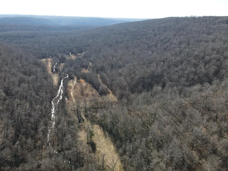This rare find is full of the essence of the Ozarks with ample opportunities for the survivalist, hunter, or nature lover. This property has been managed as a hunting tract for almost a decade and is loaded with whitetail deer, black bear, wild hog, turkey, and all sorts of small game. With rolling hills and lush bottoms, this combination has set up the ideal hunting tract with a mix of large timbered benches, funnels, pinch points, saddles, and creek bottoms with food plots. The trail system was cut in several years ago and is navigable by ATV, UTV, or tractor. (A Mahindra 4110 tractor all the implements needed to maintain the place are available for separate purchase if desired.) The base for the trail system is excellent and aids in navigating all over the acreage gaining you access to high ridges above, the rolling slopes of massive white oak timber, and the fertile creek bottoms bel...