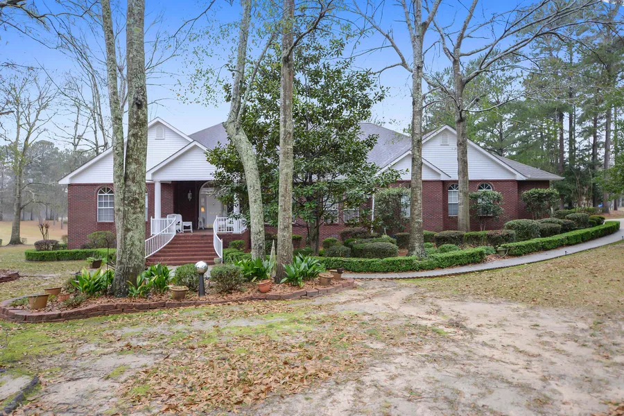 A million dollar view awaits you and is closer than you may think, a 35 min drive from I10. The 1.3 acre lot on the recently renovated Pine Burr Country Club overlooks 2 ponds, 3 fairways, and 3 greens. Natural light abounds throughout this home with a cohesive design that allows a flowing floor plan. 10 foot ceilings throughout and 4,679 feet under the roof. The master has a sitting area and the large master bath has a separate shower and marble soaking tub. The custom kitchen has thoughtfully planned storage and plenty of space for all your essentials. Let the outdoors in with a heated and cooled sun porch. The 2.5 car garage is heated and cooled, more storage available in 2,000+/-sq/ft of space in the attic area which could be used for future expansion.