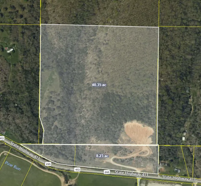 Fantastic 50+/- acres suitable for a business developer or contractor with a large flat area with easy access for a shop or storage buildings, large supply of gravel for an excavator or trucking contractor for building site prep, beautiful wooded hilltop on the side, private secluded, slightly open building site on the other, water from a spring running down the middle, outstanding deer property, this one has it all!! More acreage available!!
