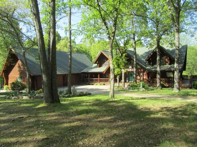 Gorgeous finish work in this amazing, custom log home that feels like mountaim lodge with its exposed beams and walls, log columns, floor to ceiling stone fireplace and beautiful windows. Meticulously maintained inside and out with many updates and upgrades. Newer appliances and pellet stoves, 50 yr architectural roof, garage door openers, lighting, fixtures and updated security system with electronic gate. This extraordinary property rests on a quiet and beautiful 18 acres (m/l) and only 10 minutes to Nixa. Gated entry with circle drive, oversized 3 car garage, Shop building and large Shed. Truly a 'one of a kind' property situated in the Nixa School District.