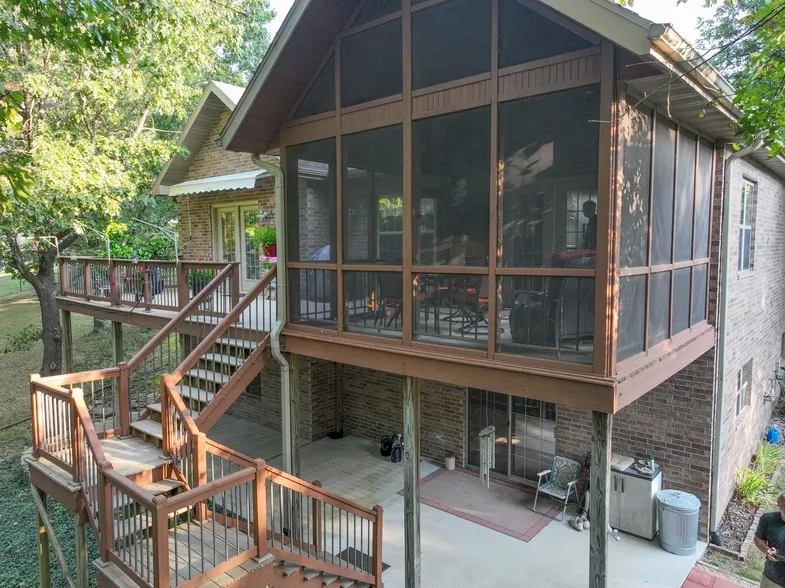 Looking for the perfect custom built home surrounded by mature trees and wildlife and right around the corner from Table Rock Lake? Look no further than this beautifully designed 4 bed, 3 bath home with everything you need on the main level. Welcome home to 344 Panorama Drive. Through the entryway is a bedroom/office space with bamboo flooring, a full guest bathroom, and an attached 2 car garage, fully insulated with high ceilings. The functional kitchen has a center island, custom built hickory soft close cabinets, pantry and tile backsplash. There's plenty of space for dining and entertaining in the open concept kitchen/dining/living area. Your new favorite spot will likely be the screened in porch, lovingly built and surrounded by the wooded beauty of the Ozarks. This is the perfect tranquil retreat for morning coffee and evening reflection. Step through the screened door taking in more nature on the large, composite deck with manual awning and steps to the lower level. The master bedroom has high ceilings, hardwood floors, and access to the deck. Master bathroom includes a large garden tub with shower and walk-in closet. Rounding out the upper level is the laundry room with washer, dryer and storage cabinets. The lower level includes a large family room with gas fireplace, 2 additional bedrooms with more storage, and a full bathroom. Through the family room exterior door is a large patio overlooking the gravel path that leads to a garden shed with pavers and a large outdoor building housing a wood workshop and lots of additional storage. The seller carved out 2 trails that go through the wooded area of the property leading to a wet weather creek and water fall during rainy seasons. Neighborhood boat launch has public access. There is also a private community dock and community park. There's so much here to take in! Don't miss your opportunity to own this meticulously and lovingly kept home. Your personal oasis is waiting.