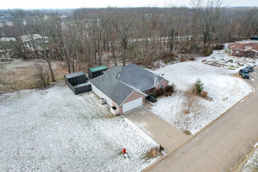 This charming 3-bedroom, 2-bathroom home offers both convenience and comfort. Granite Counter tops with travertine back splash and beautiful knotty pine, wood shaker style cabinets and a full walk in full granite shower with Heat Lamp . Located within walking distance to Reeds Spring schools and situated in a peaceful cul-de-sac, it provides easy access to nearby shopping like SuperCenter Walmart and various restaurants. The flat yard offers plenty of space, complemented by two outbuildings perfect for storage and use as a workshop. Inside, enjoy an open floor plan with high ceilings, creating a spacious and airy feel with lots of windows for natural lighting. Recent upgrades include water heater and HVAC system, in the last 5 years, ensuring year-round comfort. It's an ideal spot for those seeking a quiet neighborhood with easy access to everything you need. Ask about the ''secret door'' when you see this great home!