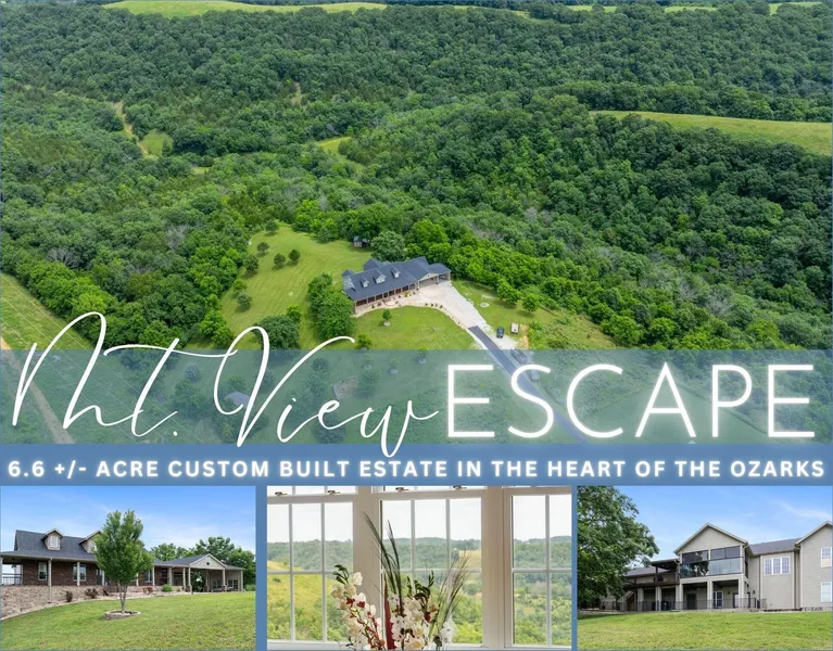 Perched high above the rolling hills & valleys of the Mark Twain National Forest and Table Rock Lake, this like-new custom estate offers truly cinematic sunrise and sunset views that will stir the emotions & bring rest to the soul each & every day. Situated on a private 6+/- acre setting, this generational retreat is designed for unforgettable gatherings, everyday luxury, & total serenity. Crafted w/ intention & extraordinary detail, this unicorn multi family home features three potential owner's suites--one on each level--plus two gourmet kitchens, a year-round glassed-in sunroom w/ panoramic views, & expansive living spaces flooded w/ natural light. The main level showcases a formal dining room w/ coffered ceiling, rich hardwoods, cozy gas fireplace, & an open-concept chef's kitchen w/ granite counters, custom cabinetry, island, stainless appliances, & space for every kind of celebration. A spacious spa like primary suite, two guest bedrooms w/ Jack & Jill bath, & attached 3-car garage+bonus carport complete the main level. Upstairs features a luxe suite w/ private living space and another spa-like ensuite w/ bath & more mountain views. Take the whole tribe downstairs to enormous rec room w/ 2nd fireplace & second full kitchen/dining, two more spacious beds w/ private en-suites, & bonus office space-perfect for multi-gen living or extended guests. From there walk outside to expansive covered patio space & submerge yourself in nature w/ endless stargazing, the sound of whippoorwills in the distance & cool evening breezes. Bonus! Discover adorable ready to complete glamping shed w/ mini-split, ready to become craft/hobby space or high end playhouse for the kiddos!And the location! 10+/- min to Walmart, Reeds Spring Schools, & Wolf Pack Park (hiking, biking, pickleball), 15 min to SDC, & 30 min to Branson entertainment, shopping & dining. New cherished memories await in the rolling ozark hills--just min from the lake action @ 358 Spring View Pl