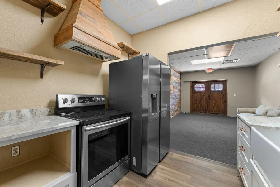 Fabulous offering with so many possible uses for this tastefully updated multi-use commercial building that includes a full (and fun) stylish apartment with beautiful finishes. Full laundry too! The hard work & remodel expense is already done - It's move in ready. If you need a work / live option you will find this ideal. Also perfect for Retail, Office, Meeting/Gathering, Medical, Dental, Resale, Booth Rentals, Show Room, Assembly & Distribution Center, Flea Market, Classes/Teaching Center, Residential expansion. Located on the prime corner with ample parking and easy access just minutes to the highway & all points of interest. Signage is here too. So much to offer at this price! See Floor Plan in Photos.