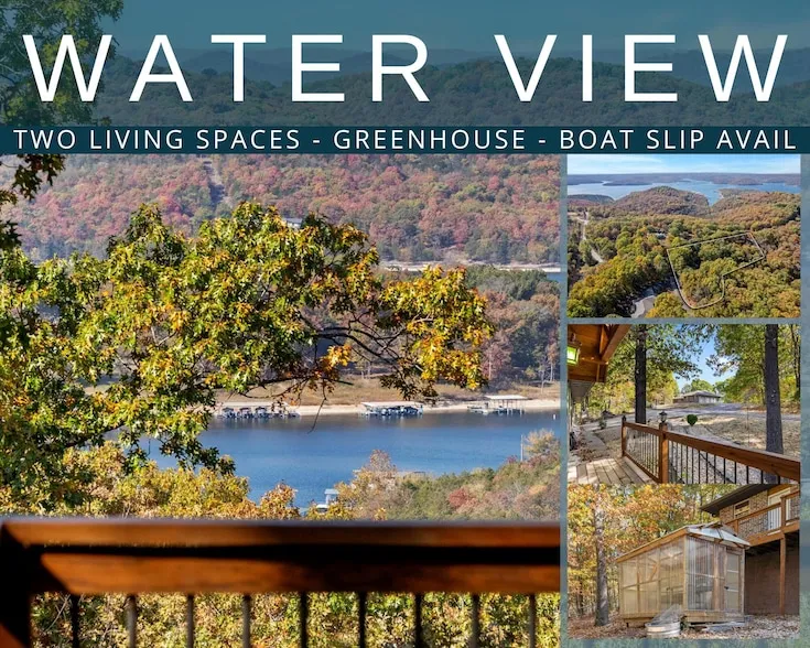 Fall in Love, Lake View @ 55 Lovers Lane #TRL Perfectly perched to capture sunset views of pristine Table Rock Lake and the rolling Ozark Hills, this HGTV-inspired retreat blends nature, comfort, and style in one of the lake's most sought-after locations just off DD Hwy. Property Highlights:Lake Views & Nature Setting - Expansive wrap-around deck overlooking Table Rock Lake, abundant wildlife, and serene low-maintenance backyard oasis on over 1 acre. Curb Appeal & Function - Exceptional construction, attached 2-car garage, concrete drive, charming greenhouse, and oversized outbuilding for all the lake toys. Inviting Main Living - Updated open floor plan with engineered hardwood and ceramic tile, iconic stone wood-burning stove, and walls of windows/sliders flooding in natural light. Chef's Kitchen - Newer stainless appliances, deep farm sink, stunning granite counters, and extra-large kitchen bar perfect for entertaining. Main Level Convenience - Owner's en suite with jetted tub, walk-in shower and XL closet; laundry and guest bath also on main floor. Bonus- Private Lower Level Apartment- Spacious second living area with private access & oversized storage/bunk/fraidy room or gym/flex space. Boat Slip Options (3rd Party, Just 5 Minutes Away!)12x30 slip available at $75k10x26 slip available at $65k Time to get some love back in your life come see what all the Table Rock Lake hype is about at 55 Lovers Lane, Branson West!
