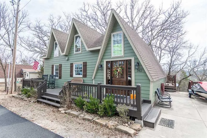 Don't Decide Until You See Inside! This cute as a button lake home features an open concept that's perfect for entertaining or spending time with family. Original A-frame remodeled in 2006 with an addition to include family room, loft, utility closet & kitchen with Stainless steel refrigerator, dishwasher & convection oven/stovetop in center island. Main level also has full bath, master bedroom & 3/4 bath. Upstairs you'll find a 1/2 bath, bedroom and large loft area that sleeps many! New plumbing & electrical systems. 500+ square feet of decking adds to the enjoyment of the house. Mature trees provide shade to the deck & there's an expandable awning to keep the rain away. Short walk or golf cart ride to the water & boat launch. 3rd party boat slip available.