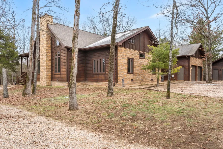 Escape to your dream lake property on 3.3 acres located in the peaceful Buck Run Estates of Branson West. Built in 2000, this fully furnished 3-bedroom, 2-bathroom home offers a blend of comfort, style, and outdoor adventure in a completely turn key package. Step inside to an open-concept design featuring soaring high ceilings and stunning wood beams in the great room, creating a warm and inviting atmosphere. Spend the evening cozying up in front of the magnificent floor to ceiling stone fireplace. The spacious kitchen and living area is perfect for entertaining or relaxing, complimented by the screened-in porch located just beyond the mudroom. This adds an additional entertaining space to move your dinner parties outside or to just enjoy your morning coffee or evening sunsets. For ultimate relaxation, step outside to the hot tub, where you can unwind after a day on the water. With three beautifully designed bedrooms, including one with a loft space constructed over the bed to maximize sleeping space, this home comfortably accommodates family and guests. The master suite offers a peaceful retreat with plenty of room to relax and recharge. This home has been thoroughly designed and well thought out. From the heated master bath floors, the dual 50 gallon water heaters, to the separate set of wall ovens and a refrigerator in the garage, this house provides everything you could ask for. Built with 2x6 construction, this home is a superior structure that is built to last. An additional detached garage is the perfect place to store any equipment and the separate wood shed keeps your firewood dry all year long. Situated on a generous 3.3-acre lot, this property offers privacy and a spacious outdoor area to explore. Just a quarter mile NW is the private handicap accessible boat dock with a 10x28 slip and a HydroHoist boat lift, providing easy access to all the boating, fishing, and water sports TRL has to offer. Slip, lift, and boat sold separately