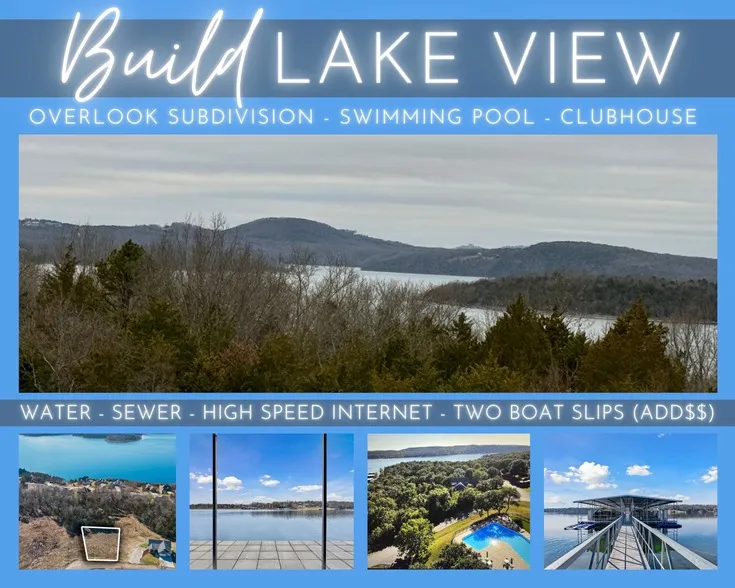 Now w/ 14x30 3rd Party Boat Slip 4 Min away! (add $) BOAT SLIP PURCHASE OPTIONAL.. Welcome to the prestigious Overlook Subdivision on Table Rock Lake! Located in one of Table Rock Lake's most sought after waterfront communities get ready to fall in love with this beautifully cleared, approximately half acre, level build site where you will finally be able to stretch your legs & enjoy coveted lake views during the day and stunning sunset views in the evening. Why is Overlook so special? Check out your neighbors! You will be surrounded by beautifully maintained custom homes with lush yards and breathtaking landscapes, expansive lake views, meticulously maintained streets, abundant local wildlife, and the amenities of community water & sewer. If it couldn't get any better, hop on your golf cart and head to the lake view clubhouse with a refreshing & sparkly swimming pool & convenient exerci...