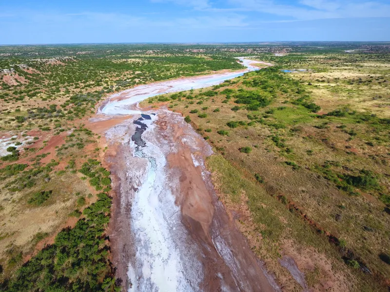 Livestock water and water for wildlife is provided by a combination of surface and well water. Live water or holes of water are typically found in the Salt Fork and Salt Croton Creek. The ranch includes several earthen tanks of varying sizes. Approximately seven drinking troughs are located throughout the southern portion of the ranch. Water to these drinking troughs is provided by wells located on the adjoining Caloosa Ranch to the east via underground pipeline. A well share agreement, between buyer and seller, will be executed upon the sale of the ranch, which will provide for a continued supply of water to these troughs.