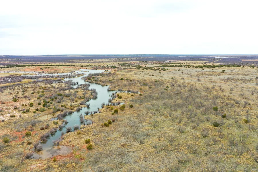 As implied by its name, Lagos Grande is a property of abundant surface water. The ranch lies south of Aspermont Lake, which when full, backs up onto the property. Excessive rainfall has been mechanically channeled and feeds into several reservoirs, beginning on the south end of the property at Aspermont Lake. From that point, the water flows to a series of earthen ponds, each designed to overflow into successive tanks downstream.