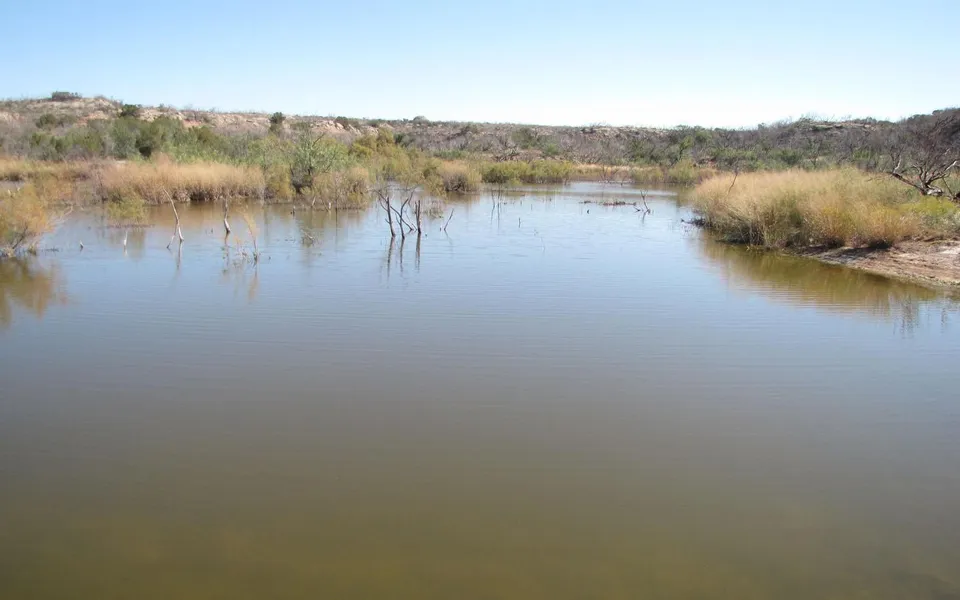 Terrain: The terrain of the property is considered to be a combination of rugged canyons with rocky ledges that are sometimes steep draining to productive bottoms and flats. Throughout the southern portion of the property limestone and gyp outcroppings are common along the canyon ledges and sides. As you transition north through the property productive bottomland becomes more common. Principal cover is provided by mesquite and cedar with some salt cedar along a creek which flows through the northern portion of the ranch.