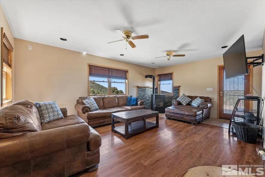 Stunning Virginia City Highlands Home with Panoramic Views and Upgrades Nestled in the serene Virginia City Highlands, this breathtaking 3-bedroom, 2.5-bathroom home offers unparalleled views of Reno, the Sierra Mountains, and the Virginia Range. Situated on 2.24 acres, combining two lots into one, this property boasts not only a beautiful residence but also a 2,400 sq. ft. detached garage perfect for extra storage, vehicles, or workspace., Interior Features: Spacious living room with a large bay window, framing the picturesque surroundings. Newly remodeled kitchen with a sleek countertop, large stainless-steel sink, modern faucet, and updated ceiling featuring a Bluetooth light. New flooring in the living room and office/den with Pergo waterproof laminate wood, replacing carpet. Custom oak steps leading to the second floor. Fresh interior and exterior paint throughout. New pellet stove with a stylish tile back wall. Bathrooms: Master bathroom offers a luxurious feel with a new shower featuring a glass enclosure, stone tile walls, luxury vinyl plank flooring, and a newly installed toilet. Plumbing is ready for a freestanding bathtub. 2nd bathroom completely updated with a new shower/bath, faucets, mirror, vanity light, and fan/light/heater. Brand new half bath with stylish fixtures, including a fan/light combo with wood ceiling accents. Outdoor Living: Expansive deck with 220V connection and dedicated electrical wiring/panel, ready for a hot tub. Freshly expanded front porch with a beautiful pergola. New back deck, perfect for outdoor entertaining and soaking in the incredible views. Concrete apron driveway and new garage door to the attached garage. New outdoor decorative light fixtures add charm and curb appeal. Upgrades & Systems: Kinetico water system with reverse osmosis. New septic line, septic risers, and septic tank services completed in 2021. All new appliances for modern living. New window blinds (faux wood) and new window screens. Additional Features: Newly constructed steel shop/detached garage (40x60) with final inspection completed in August 2024. This home is an absolute gem, combining comfort, style, and functionality, with thoughtful upgrades throughout. Don't miss the opportunity to experience this one-of-a-kind property with stunning views and peaceful surroundings. This home is perfect for getting away from the city noise but only 20 minutes from Reno. 30 minute drive from Reno-Tahoe International Airport, 37 minutes from Tahoe skiing, 35 minutes from downtown Carson City. Wake up and open your patio door to say good morning to the wild horses that roam in the neighborhood. Located in the Virginia Range, and just minutes from access to 80,000+ acres of public land ROOM and BUILDING DIMENSIONS --- MAIN FLOOR --- Living: 13'11" x 18'11" *** Kitchen: 14' x 11'11" *** Dining: 6'9" x 9'3" *** Office: 12'1" x 15'11 *** Bath: 5'2" x 5'6 *** Laundry: 6'5" x 6'5" *** Attached Garage: 21' x 31'6 --- 2ND FLOOR --- Primary: 13'9" x 19'10" *** Bath: 10'5" x 11'9" *** Bedroom 2: 13'9" x 13'7 *** Bath: 6'7" x 9'8" *** Bedroom 3: 12'1" x 12' --- DETACHED GARAGE --- 40'1" x 60' | 2408 sq ft