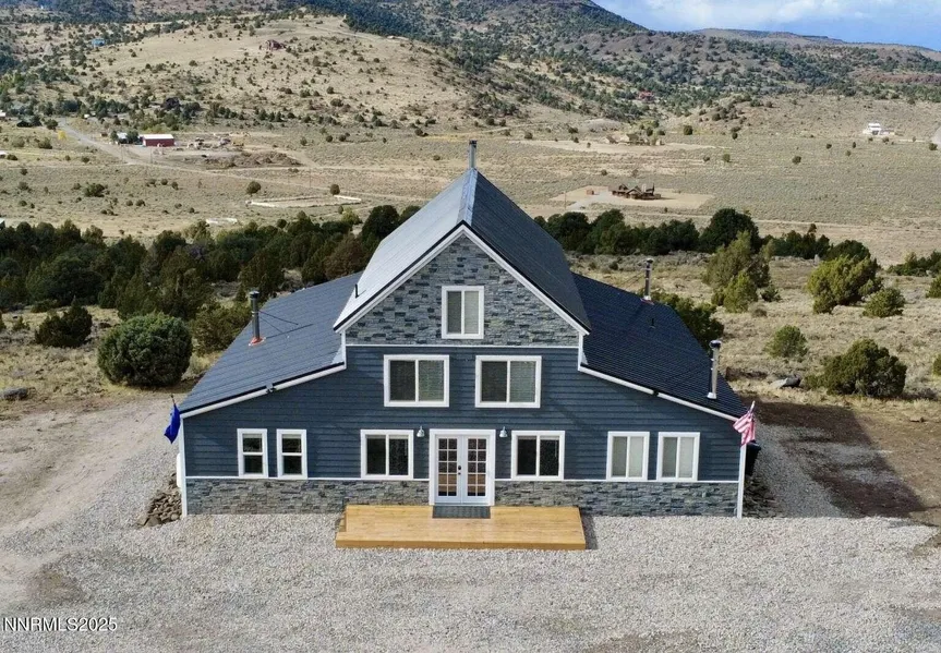 This Virginia City Highlands home has privacy with value you won't want to miss. Perfectly situated on 10 acres for seclusion and views, you will have breathtaking sunsets from the first floor Great-room, upstairs loft and newly built 500 square foot back deck. Morning sunrises are equally as enjoyable from the front siting room and front deck. Local wildlife will also be seen with frequent visits from rabbits, squirrels, wild horses and an occasional herd of deer. Completed in 2024 this 3-bedroom, 2-bathroom house was designed and built with functionality and homesteading in mind. The entire home is self-sufficient and off grid with the nearest powerlines approximately 3/10s of a mile away. As with most homes in the area, heat is primarily provided from wood burning. With energy efficient wood stoves in all bedrooms as wells as the common area, you are sure to be warm and cozy even on the coldest nights. Back-up propane heating is also installed and necessary when excessive winds are present. Large ceiling fans are located throughout and provide ample comfort during the mild summer season. A high-efficiency mini-split cooling/heating system is also installed in the common area. Electricity is supplied from a 10-kilowatt solar system with 1200 amp/hours w 48 volts lithium battery storage (installed 2025). An 8-kilowatt back-up generator with auto-start will also ensure power is available and your battery banks are topped off when sunlight is scarce. This system does have its limitations and power management will need to be considered when daylight hours are shorter during the winter months. System is completely upgradeable and additional battery storage and solar panels can be added. For those not interested in the off-grid lifestyle, power could also be brought to the property. Well water is abundant but contains excessive iron as with most houses in the area. A 5-stage whole house filtration system cleans water for daily use and an under-sink reverse osmosis system in the kitchen purifies water for drinking and ice. The interior of this home is sure to captivate with exposed post and beam construction throughout as well as a vaulted ceiling spanning 30 feet. The energy efficient all electric kitchen with large open pantry, huge stainless steel workstation sink, large island and bar-top seating is open to a centrally located dining area and great-room with wood burning stove. This open floor plan is great for large gatherings while the floor to ceiling great-room windows allow plenty of natural light with spectacular views of the Virginia City Highlands Valley and beyond. The extra-large owner's suite was also designed for comfort and luxury with plenty of room for a king size bed as well as a sitting area. The oversized owner's closets provide ample storage with plenty of hanging space as well as upgraded shelving and drawers. Completing the suite is a well sized bathroom with enclosed toilet room, oversized shower with wood-plank flooring, double sinks and a freestanding tub. Both additional bedrooms are also oversized and share a Jack-and-Jill bathroom that also accommodates the common area of the house. Bathroom has double sinks, shower and enclosed toilet room. The laundry room opens to the outside back deck and doubles as a mudroom on wet or snowy days. Completing the interior of this home is an upstairs loft. With approximately 400 square feet of space, this area makes a great media or game room while also offering spectacular views. This addition is finished but was not permitted. 40-foot Conex is included with sale and makes great temporary storage. Level 2 EV charger located at utility shed can be utilized during hours of peak sunlight.