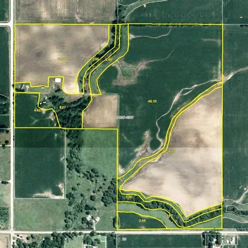 120 acres, m/l with 106.8 crop acres and average CSR of 87.8. 9.8 acres in CRP. Modular home and septic both new in 2002. Several outbuildings. $6,000/A