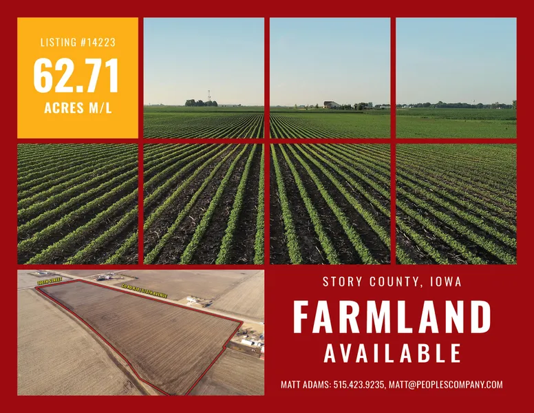 Rare opportunity to own high quality farmland in Story County, Iowa between Ames and Des Moines! The tract is nearly 100% tillable with approximately 59.45 FSA tillable acres carrying a CSR2 of 85.9 and has frontage along paved Co Rd R38. Land seldom comes up for sale in this area and rarely makes it to the open market.