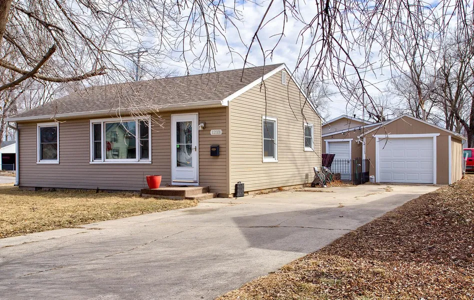 You will love the updates in this cozy 2 bed 1 bath ranch home located near all three Nevada schools! Updates include: Windows and siding in 2015, kitchen remodel featuring white cabinets, new countertops, tile floor, subway tile backsplash and new appliances in 2016. Also in 2016 the bathroom was updated laminate floors laid throughout the entire main level. New AC in 2017 and new deck in 2020 that leads out onto an open patio and the large fenced in backyard. The 1.5 car garage is perfect for a car and a little shop/work space. The larger of the two bedrooms has a bonus room attached that could be used as a 3rd bedroom, office or workout space.