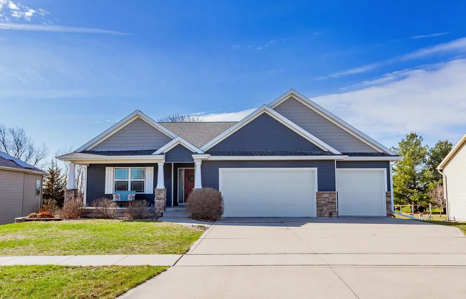 Stunning 5 bedroom ranch in highly desired Huxley Location! Welcome to this beautifully designed ranch home offering over 3,000 sqft of finished living space. From the moment you arrive, you'll be impressed by the inviting covered front porch and well maintained landscaping. Step inside to find a welcoming entryway, with two spacious bedrooms and a full bath just to your right. The heart of the home is the open-concept living area, featuring a gorgeous tray ceiling and a dual-sided stone fireplace that extends into a cozy sunroom, perfect for year-round enjoyment. The kitchen is sure to impress with stainless steel appliances, a stylish backsplash, a pantry, and a breakfast bar, making it an ideal space for cooking and entertaining. The primary suite offers a full bath, dual sinks, tile flooring, and a generous walk-in closet. A convenient mudroom/laundry room connects directly to the th...