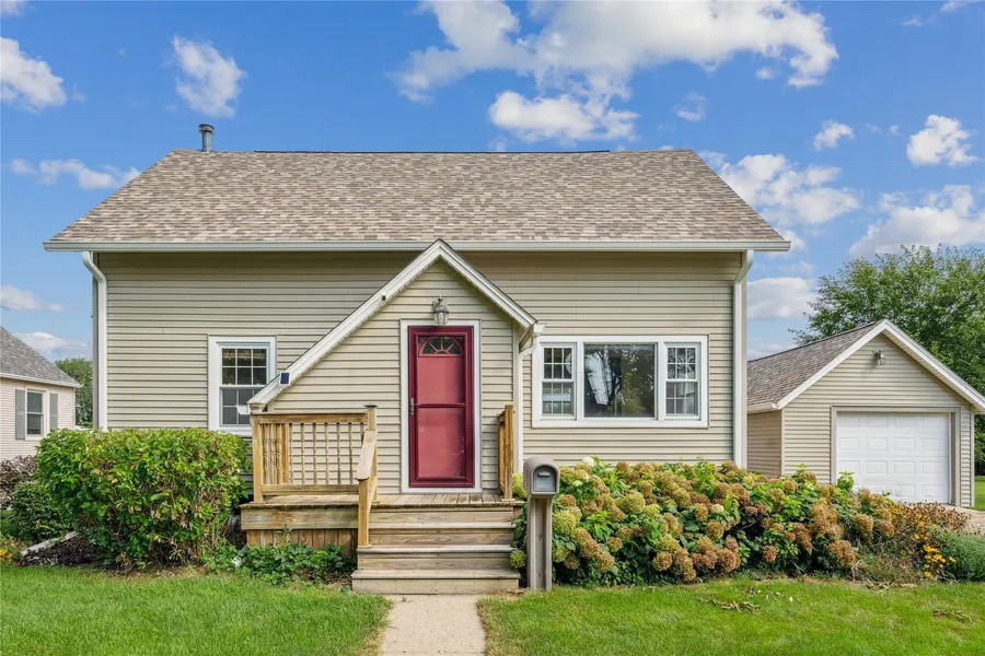 Seller will credit buyer up to $3,000 at the time of closing for prepaid and closing cost items, with an acceptable offer. With 4-bedrooms & 2-bathrooms this home perfectly blends timeless charm with modern updates, creating a warm and inviting atmosphere throughout. Step inside to be greeted by a stunning glass entry door and hardwood flooring on the main level that add character and style. The kitchen has been updated with cherry cabinets, quartz countertops, sleek stainless steel sink, modern fixtures, and spacious center island that offers both prep space and casual seating. One bedroom is conveniently located on the main floor and could easily serve as a home office or guest room. Upstairs, you'll find three generously sized bedrooms, great closet space, along with a nicely remodeled 3/4 bathroom. Outside, the backyard is a retreat of its own, featuring thoughtful landscaping, a wooden deck, and a brick patio-ideal for barbecues, gatherings, or simply enjoying a peaceful evening. A detached garage and additional storage shed provide plenty of room for tools, toys, and seasonal items. Location is everything, and this home delivers. It's centrally located right next to Nevada's elementary, middle, and high schools.. Plus, it's within walking distance to parks, the bowling alley, convenience stores, and more.