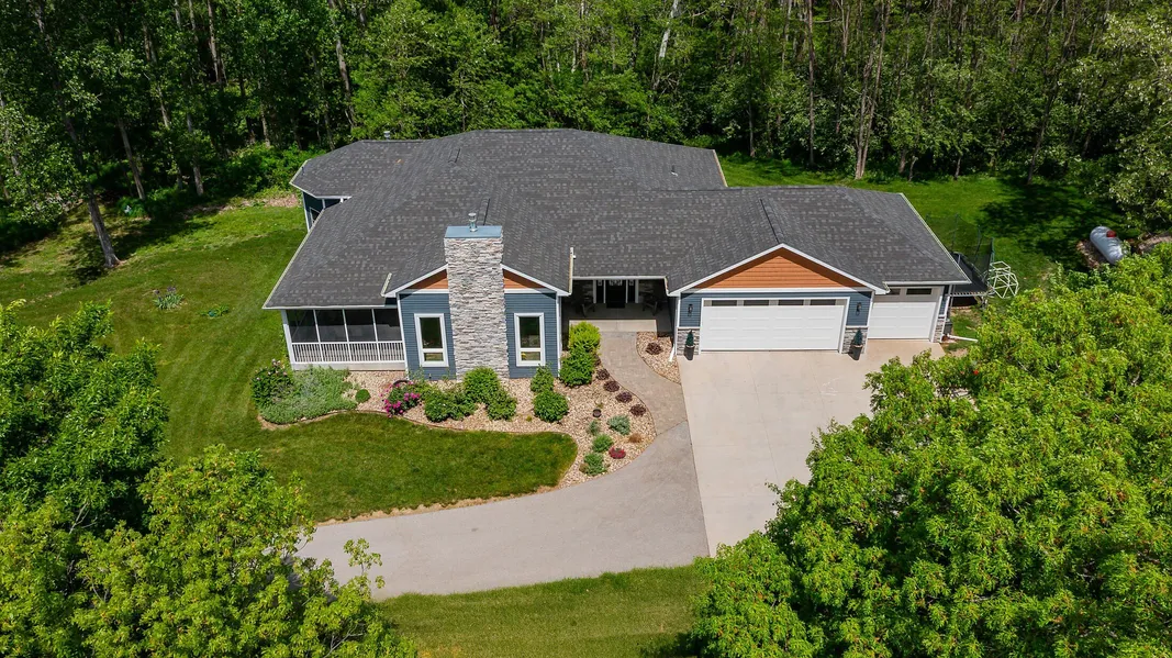 If you've been dreaming of a home where nature surrounds you - where the rustling of trees and birdsong greet your mornings- without sacrificing proximity to in-town conveniences, this is your opportunity. Tucked into 3 serene acres in the highly sought-after Gilbert School District, this expansive 5BR, 5 bath home offers nearly 4000 sq. feet of thoughtfully designed living space. The main level welcomes you with an impressive great room anchored by a vaulted ceiling and gas fireplace. The kitchen is a cook's dream with a large island, custom walk-in pantry, and seamless flow into a generous dining area framed by windows. The primary suite is a true retreat, offering direct access to a private deck, ensuite bath with tiled shower, dual vanity and walk-in closet. A second bedroom, full bath and main floor laundry are nearby. An impressive main floor den/office features built-ins, a second fireplace, wet bar and half bath - perfect for work, relaxation or cocktail hour. Downstairs, the walkout lower level offers even more space to live and unwind, with a second family room, adjacent half bath, 3 additional bedrooms, full bathroom and huge storage room. The oversized 37' X 26' garage provides plenty of room for vehicles, tools and toys, while the screened porch off the main living area invites you to enjoy sunset views and quiet evenings outdoors. With new siding, roof, gutters, fascia and soffit, and refreshed landscaping, this home is move-in ready. Experience the rare blend of natural beauty and spacious living. If having a garden or building an additional building for your needs is a necessity, you'll find several perfect locations for it!