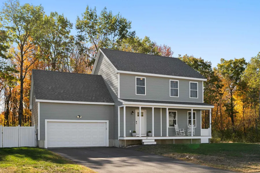 This is as close to brand new as you can get! This home has an inviting farmers porch, 3 bedrooms, 2.5 baths, a two car garage, and a deck that overlooks the newly fenced in spacious yard! The desirable and popular open concept first floor plan will impress you with gleaming hardwood floors, todays trends in kitchen selections including stainless appliances, dark finish cabinets, and a kitchen island/bar stools. The eat in dining area leads to the sliding glass door and deck, and is open to the spacious, yet cozy living room . Also on the first floor is a pantry, 1/2 bath including a washer/dryer and direct garage door entry. The second floor features a master bedroom with a 3/4 bath, a double sink vanity and a walk in closet. Finishing off the second floor are two additional good sized bedrooms and a full bath. If that isn't enough space for your needs, there is an unfinished room above the garage to complete as you like - playroom, office, family room - you decide! Think central A/C, summer grilling on the deck, yard games/activities, no having to shovel your car off in the winter, and relaxing/sipping beverages on the Farmer's porch. YES - this home has it all! The central location is SO close to commuter routes, shopping and restaurants. AND... you are only a small ride away to the lakes region, North Conway, Portsmouth and the ocean/beaches. This home will not disappoint! ALL OFFERS DUE BY 4:00 P.M ON SUN 10/25/20.