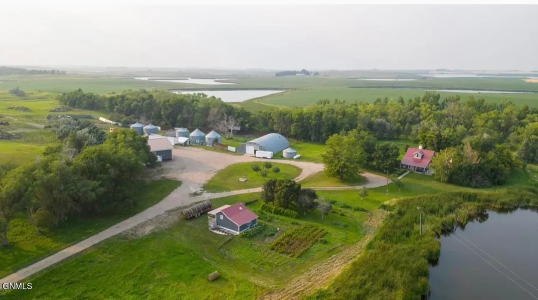 Feast your eyes on this one in a million 238 acre slice of heaven! This extraordinary estate with iconic views everywhere you look is tucked away in the rolling hills and ponds just outside of Gackle, North Dakota, located half mile from a paved road and near fishing lakes. The current owners have raised livestock, there are two Ritchie waterers and a cattle pen made of freestanding windbreak and panels, with two shelters. Crops, CRP signup possibilities, gardens, established flowerbeds and a raised produce bed just outside the kitchen door, and for the last 10 years the property has been chemical free. The grounds have been used for hunting as there is wildlife and birds on the ponds, you never know what you will see next and pheasants and guinea hens have been raised on the property. Great hiking and kayaking on the ponds. The owners were working towards self-sustained living off the grid including a greenhouse, and a 30,000 watt generator that turns itself on to run the farmstead when the power goes out. Well water is used and there is rural water dug in two locations as a backup water supply. The expansive grounds were in the process of being developed for tourism income producing rental units with a reproduction of a Homestead House in a wooden granary where Guests could experience daily life on a homestead. There is a smaller granary rental for a Summer Kitchen Homestead experience that is nestled near the gardens which have produced organic produce for the family including apples, pears, cherries, grapes, aronia berries, and much more. There is a second impressive Intercept shop (Man Cave) newly built on the property that holds a motorcoach and cars and includes a one bedroom loft apartment and bathroom that can also be an online rental property. It has the capability for hot water floor heat but not hooked up. A 50 x 70 foot wide insulated, partially heated Quonset provides great farm equipment storage and mechanic space. 5 grain bins can be rented for additional income and a sixth one was modified and used for wood storage. I know what you're thinking, it can't possibly get any better, but we've saved the best for last! A newly updated 1926 3-bedroom 2-bathroom home with a detached two stall garage. The restoration retains many unique features of the home such as a south facing porch and refinishing the kitchen ceiling's hardwood. The kitchen sports stunning new solid hickory cabinets, 4 chair eating counter, with tons of storage cupboards and a large pantry. Newer smart Fridge. The large mainfloor bedroom opens out onto a tranquil backyard deck and flowerbed. I can't forget to mention the striking stone fireplace that's enough to make you want to sit down, gaze out the new windows past the patio to the pond and enjoy a cozy evening with family and friends old and new! This type of property doesn't come along often, schedule your showing today!