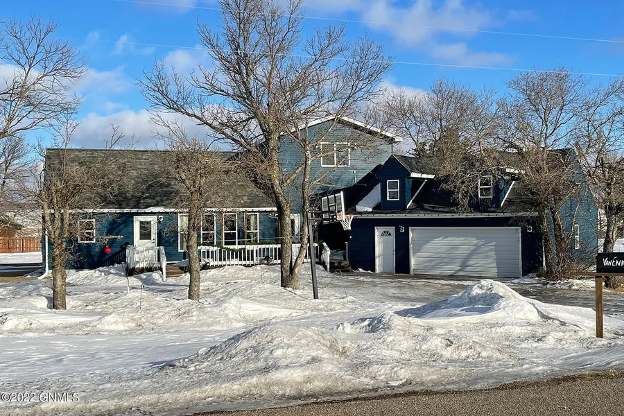 Minutes from Jamestown! Spacious 5 bedroom, 3 bath home on corner lot with a 2 stall detached & 1 stall detached garages. Large primary bedroom suite with extra space to create as your own. Large deck for entertaining. Recent updates include vinyl siding & vinyl double pane windows in '21 on main & upper levels, rural water, most appliances and added fireplace in living room. Call your favorite REALTOR(r) today for viewing! Listing agent is relative of sellers.