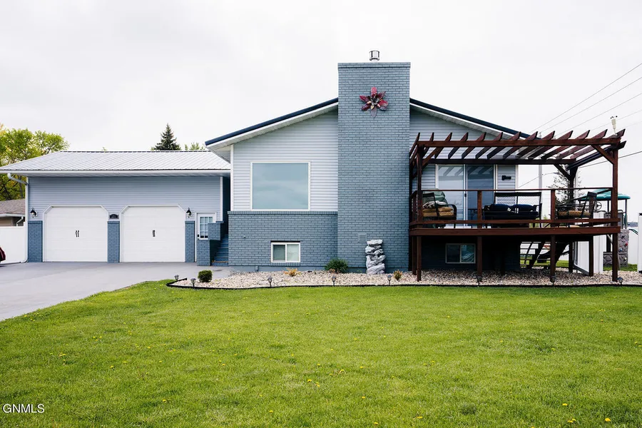 This beautifully remodeled home boasts an open concept design that seamlessly connects the kitchen (with pantry), dining, and living room (with beautiful fireplace), creating an inviting space to enjoy. With 5 bedrooms, including a luxurious primary suite featuring a walk-in closet, walk-in shower and a heated/lighted mirror, along with 2 additional bathrooms, family room (with 2nd fireplace) and an office, this home provides ample space and modern amenities making it an ideal place to call home. The basement was completely renovated within the last couple years. This home features an attached two-stall garage plus additional garage stalls currently used as an entertaining space with a hot tub and pool table. The garages are heated and insulated. The maintenance-free fenced-in yard and deck with a pergola (off the dining room) offer a perfect spot to enjoy the city views of Jamestown and located on a corner lot. The exterior was recently painted; the metal roof is 5 years old.