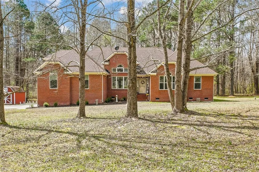 Lovely 4 bedroom 2.5 bath brick home on a private 3.5 acre lot with a hot tub and Lake Views. Home boasts an open floor plan, with a kitchen fit for a chef. Kitchen features stainless steel appliances, dishwasher, double oven, built-in fryer, warming lights, warming drawer, walk-in pantry, new luxury vinyl flooring, and opens to the deck. Spacious living room with fireplace and a formal dining room with vaulted ceilings. Large Primary suite with a huge walk-in closet and a sitting area with views of Lake Prince. The master bath includes a walk-in shower, jetted tub, and double sinks. The remaining bedrooms are large and there is ample storage space throughout the home. Plenty of room to grow inside and out.