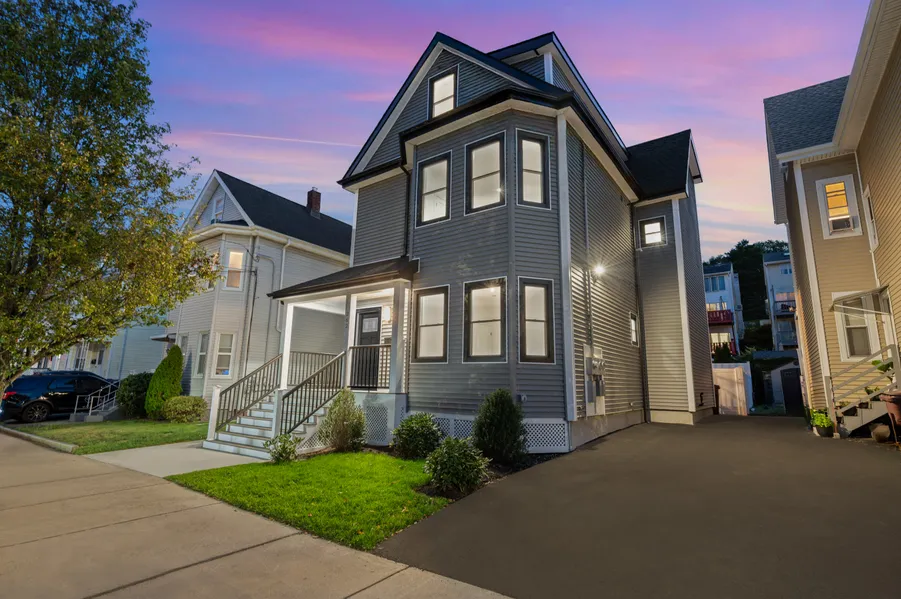 SIGNIFICANT PRICE REDUCTION! Rare gut renovated 2 family in the heart of Revere, offering luxury & income potential. With over 600 sqft of patio and outdoor deck space & a large backyard. This property is ideal for both owner occupants & investors. Unit 1 features 2 bedrooms, modern kitchen w/ quartz countertops, stainless steel appliances, custom closets & a stylish bath w/ Italian terrazzo tile. Spanning 3 levels, Unit 2 offers 3 bedrooms & 3 full baths, highlighted by an open kitchen w/ a quartz waterfall peninsula, elegant wainscoting & a primary bedroom w/ en suite bath. All bedrooms feature custom closets. Spa like baths include heated LED mirrors, travertine & terrazzo finishes. Recessed lighting & premium finishes throughout, new systems & separate utilities ensure efficiency & low maintenance living. Outside enjoy multiple decks, a paver patio, fenced yard & a new driveway w/ 2 ...