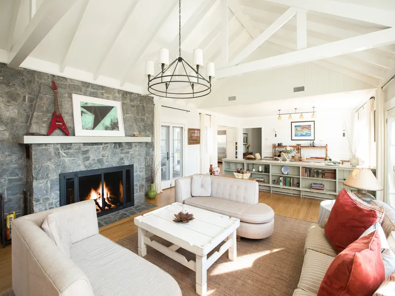 Retreat to the privacy of this unique mid-century stone house estate perched high on a hill near the southern tip of Nassau Point. The spacious interior w/open floor plan sets the tone for modern living & gracious entertaining while the outdoor stone pati