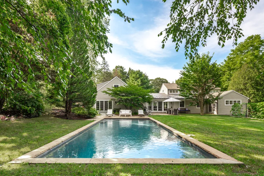 Sheltered by mature trees and exquisite landscaping on a rare 0.73+/- acre oasis in Sag Harbor Village, this recently renovated 4-bedroom turnkey home features a heated gunite pool, attached two-car garage, and open kitchen with easy flow to the al fresco dining patio. The home opens to a formal living room with coffered ceiling and fireplace. The formal dining room leads to the bright, open kitchen and sitting area, flanked by a powder bath, office nook, and pantry. French doors open to the dining patio and rear grounds. The first floor master bedroom suite has French doors out to the gardens. Upstairs are a total of three en suite guest bedrooms and a recreation room. A brand new mudroom entry off the attached garage leads to the bonus room gym space. A minute from Main Street Sag Harbor, rare opportunity to own a turnkey home on a private three quarters of an acre with plenty of yard ...