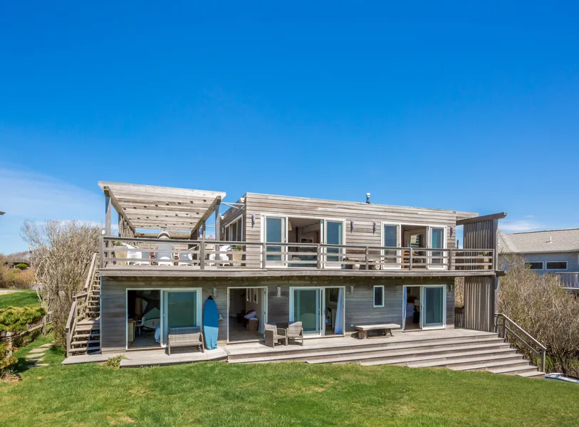 Perched above the shoreline is this classic Peter Blake beach house from the 1960s masterfully restored in keeping with the original design. This upside-down house has four bedrooms on the ground level and spacious living/dining and terrace area on the upper level, with breathtaking views over Montauk's sandy beaches across the ocean. Also available April for $20K; May for $30K; June for $75K.