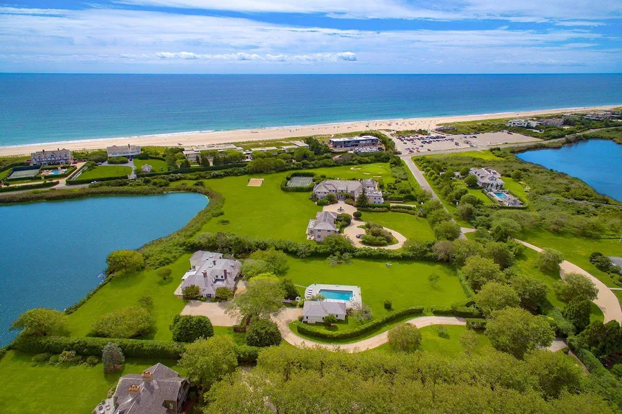 An elegant estate section property with 220+ ft of direct waterfront, Dogwood Pond offers a serene waterfront setting, just mere moments from the ocean. The combination of proximity to the ocean together with its own east-facing view across Coopers Neck Pond, makes for a most tranquil environment. On 2.2+ acres, a winding drive travels past the broad flat lawn, the heated, in-ground 34'x19' Gunite pool, pool house, and two-car garage to the parking court at the front of the residence. The five-bedroom traditional-style home is bordered on the west by a walled, flagstone terrace, and on the east by a long slate patio. Retractable awnings offer shade options whether poolside or waterside. The covered latticed entry opens to the primary stair and hallway, off of which are the powder room, the study with fireplace, and the family room with fireplace that opens onto the terrace. Opposite, the...