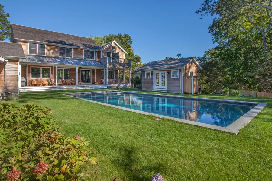Built in 2015, this spacious, light filled home sits on one of the largest lots in the Historic District of Sag Harbor. Located in a quiet, private setting just ten minutes walk from the village shops and restaurants, the property is a perfect summer compound in the middle of all that the Hamptons has to offer. The open plan first floor offers a large kitchen, a dining area with a table that seats ten, and a large, comfortable living room with a wood burning fireplace. The first floor also has a large mudroom and a powder room. The rear patio faces west towards the pool/spa and pool house and offers a comfortable outdoor seating area, outdoor seated dining for ten, and a gas grill. The second floor has a master suite with full bath, walk in closet, and west facing deck, plus three additional bedrooms, a full bath, a laundry room, and a light filled book nook. The home also offers a 1200 ...